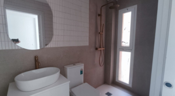 Het appartement heeft een ruime woonkamer die uitkomt op een royaal terras op het westen, perfect om te genieten van de middagzon en buiten te eten, en een aparte volledig uitgeruste keuken met een aparte bijkeuken. De ouderslaapkamer heeft directe toegang tot het terras en een eigen ensuite badkamer, terwijl de tweede tweepersoonsslaapkamer gebruik kan maken van een complete badkamer met douche. De woning is voorzien van dubbele beglazing en airconditioning voor comfort het hele jaar door.