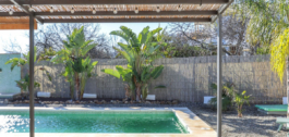 Het zwembad voelt heel privé en grenst aan de boomgaarden en heeft natuurlijk verreikend uitzicht op de bergen.