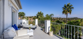 De aantrekkelijke trap leidt naar de twee gastenslaapkamers en naar de slaapkamersuites. Op de bovenverdieping vind je twee even grote slaapkamers en een familiebadkamer. Naast de slaapkamers is een groot loungeterras over de hele breedte met verreikend uitzicht.