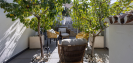 Buiten vind je een indrukwekkende, uitgebreid en architectonisch ontworpen privé- en beveiligde, volledig bevoorrade en aangelegde tuin met weinig onderhoud en talloze zit-, lounge-, eet- en zonneweiden. Daarnaast is er een barbecueplaats, een romantische boomgaard en zithoek op de binnenplaats, diverse fruitbomen en een moestuin. Het primaire eetterras biedt gemakkelijk plaats aan meer dan 12 gasten, kijkt uit over en biedt directe toegang tot het grote zwembad, het zonneterras en de tuinen.