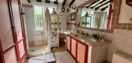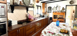 Aangrenzend is de ruime keuken, met rustieke accenten en moderne voorzieningen en voldoende ruimte voor een tafel die comfortabel plaats biedt aan maximaal 8 personen. De privégarage is ruim genoeg voor twee auto’s en doet ook dienst als bijkeuken en opslagruimte met wandrekken. Deze villa is verdeeld over vier slaapkamers – 3 hebben een eigen badkamer, wat privacy en comfort biedt, terwijl een veelzijdige bergruimte in de buurt van de keuken mogelijkheden biedt voor extra woonruimte.
