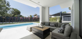 Prachtige moderne en elegante villa, gelegen in een van de meest prestigieuze gebieden van de New Golden Mile, tussen Marbella en Estepona. Op slechts 1 km van het strand en op 10 minuten rijden van Puerto Banús combineert deze woning luxe, comfort en een onovertroffen locatie.