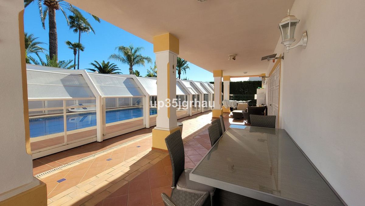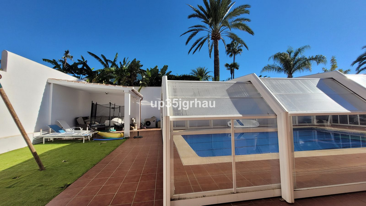 Villa gelegen in de prestigieuze villawijk Bel Air, op 1 minuut van de commerciële zone met supermarkten, restaurants en de snelweg, op 5 minuten van het strand, tussen Estepona en San Pedro, vinden we dit familiehuis solide gebouwd maar tegelijkertijd met veel charme. Op een perceel van ongeveer 1150 m2, met een aangenaam zwembad van 50 m2 (overdekt in de winter), barbecue en veel buitenruimte om te genieten van het uitstekende klimaat dat we hebben aan de Costa del Sol.