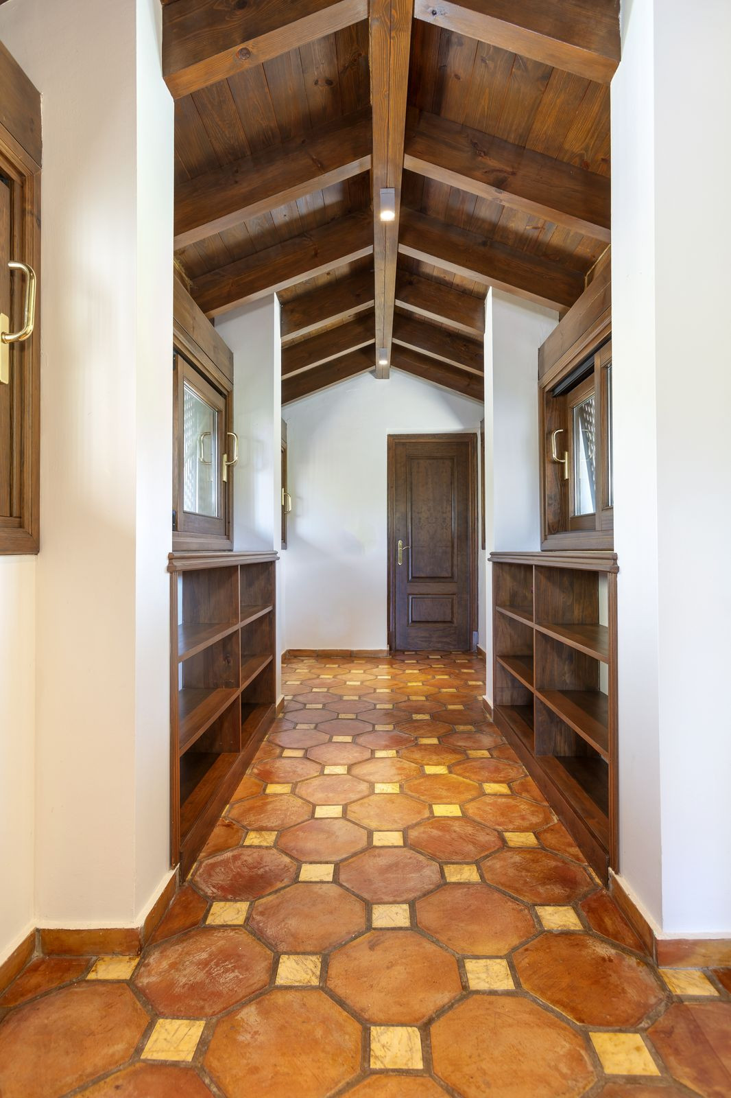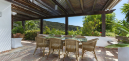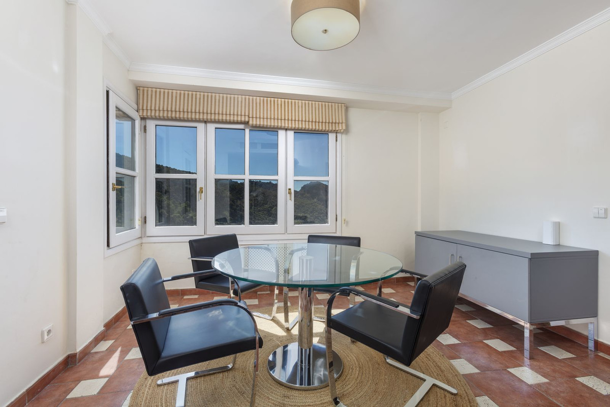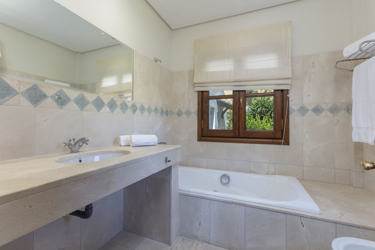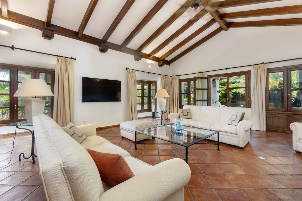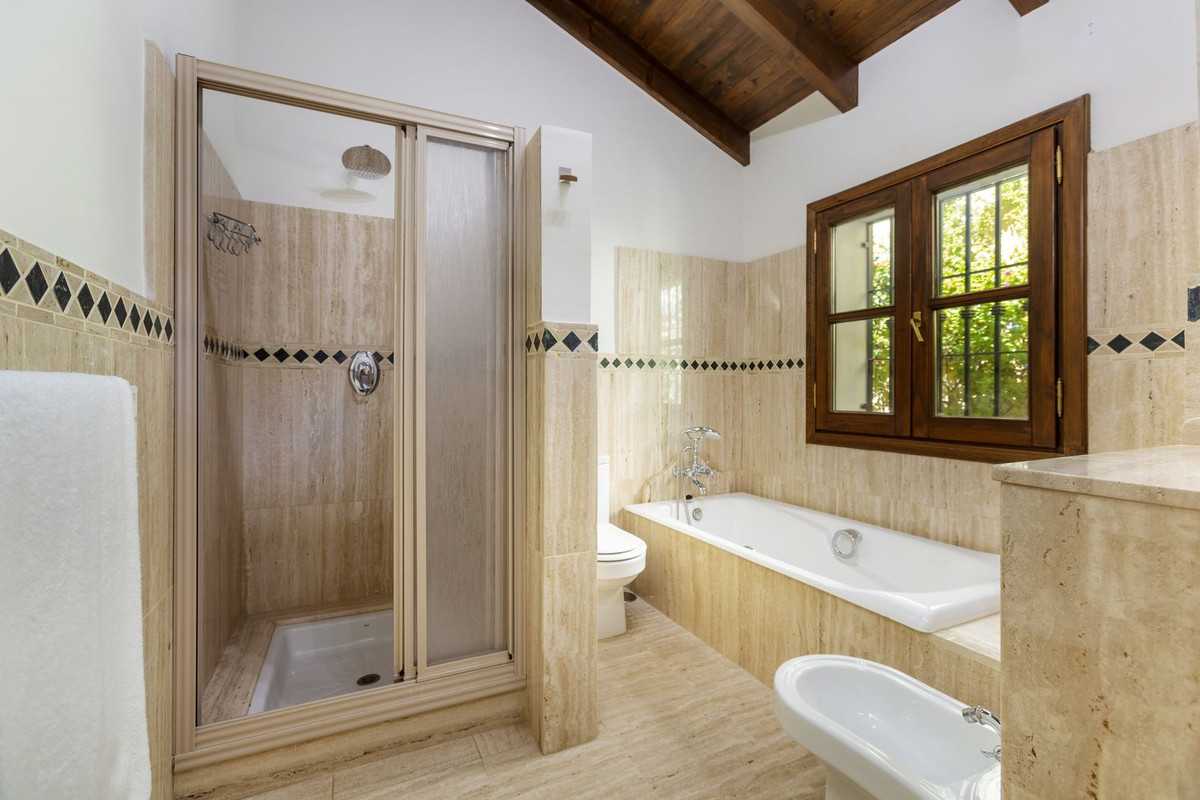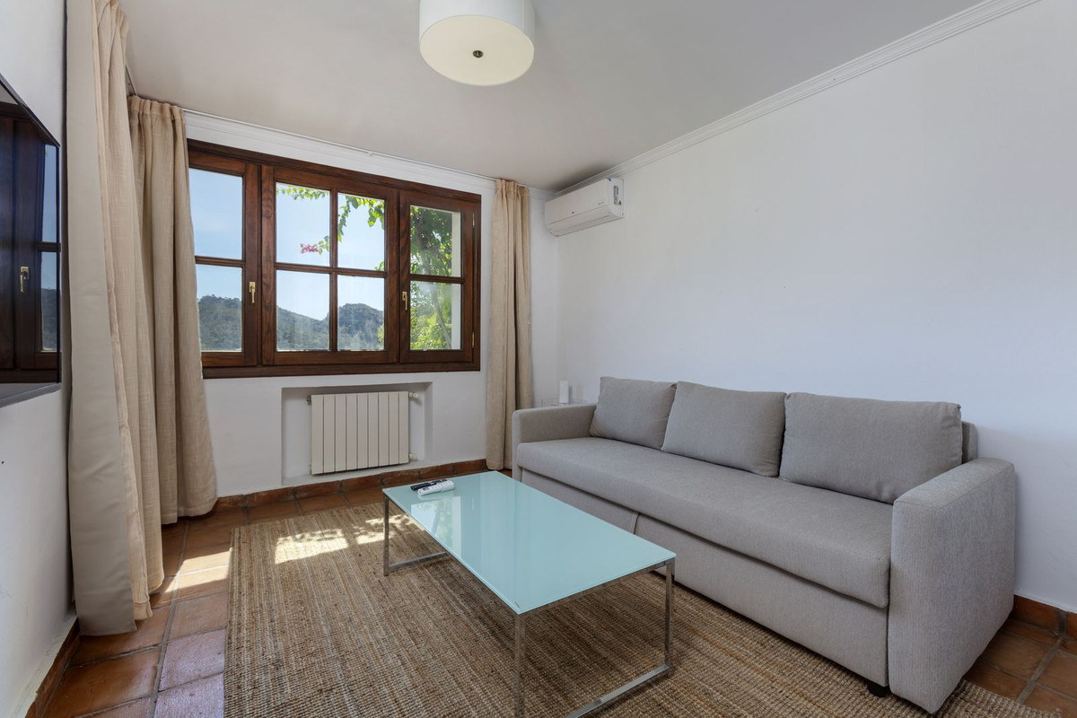 Elektrische poorten leiden je naar de oprit met parkeerruimte voor meerdere auto’s en een dubbele garage. Er is een bijkeuken plus grote keuken die uitkomt in de ontbijtkamer. Enorme eetkamer die uitkomt in de indrukwekkende zitkamer met hoge balkenplafonds en gezellige open haard – perfect voor winteravonden. Vanuit de zitkamer is er toegang tot een enorm terras en tuin met een groot verwarmd zwembad – ideaal voor alle zwemliefhebbers op een winterse dag! De tuin biedt totale privacy en een totaal panoramisch uitzicht over de vallei en het dorp en op de beschermde bosgebieden en het super exclusieve La Zagaleta.