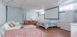 Vanuit de woonkamer gaat de trap naar beneden naar de benedenverdieping. Hier vind je een extra slaapkamer en badkamer met toilet, geweldig als je personeel hebt of als je extra gasten hebt. In het garagegedeelte is ruimte voor veel auto’s. De huidige eigenaren hebben een speelruimte voor de kinderen gebouwd met spelstations en een tafeltennistafel. Er is ook een ruimte die wordt gebruikt als bioscoop en ontspanningsruimte. Er is nog een zeer grote kamer die niet op de foto’s staat. Deze wordt nu gebruikt als opslagruimte, maar als de nieuwe eigenaar een ander gebruik wil, kan er een spa, fitnessruimte of meerdere slaapkamers van worden gemaakt.