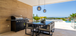 De moderne architectuur van de villa benadrukt het natuurlijke licht en de open ruimtes, waardoor er overal een lichte en uitnodigende sfeer heerst. De strakke, eigentijdse keuken is perfect ingericht voor zowel informele maaltijden als formeel entertainment. Uitgestrekte terrassen en een prachtig aangelegde tuin omlijsten een privézwembad met adembenemend uitzicht op zee, een ideale omgeving om te ontspannen en buiten te genieten.