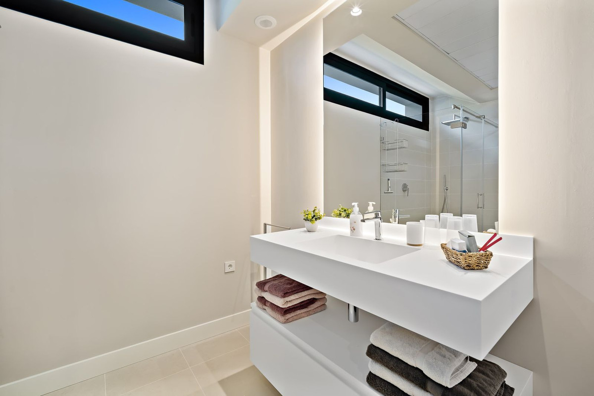De villa is luxueus ingericht en afgewerkt met materialen van topkwaliteit. Het terras en de veranda vormen een aanvulling op de ruimtes rond de tuin en het privézwembad, zodat je het hele jaar door kunt genieten van het milde klimaat.