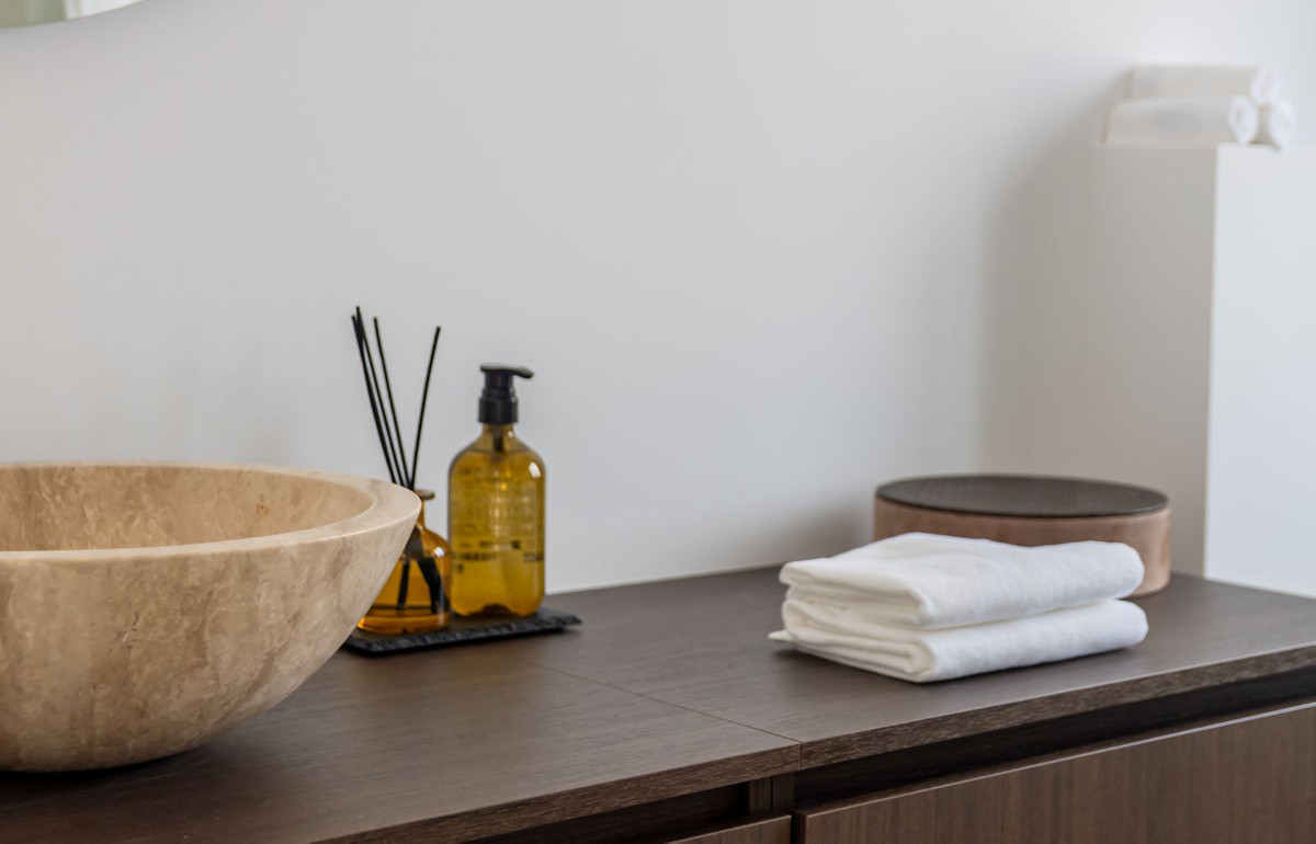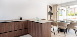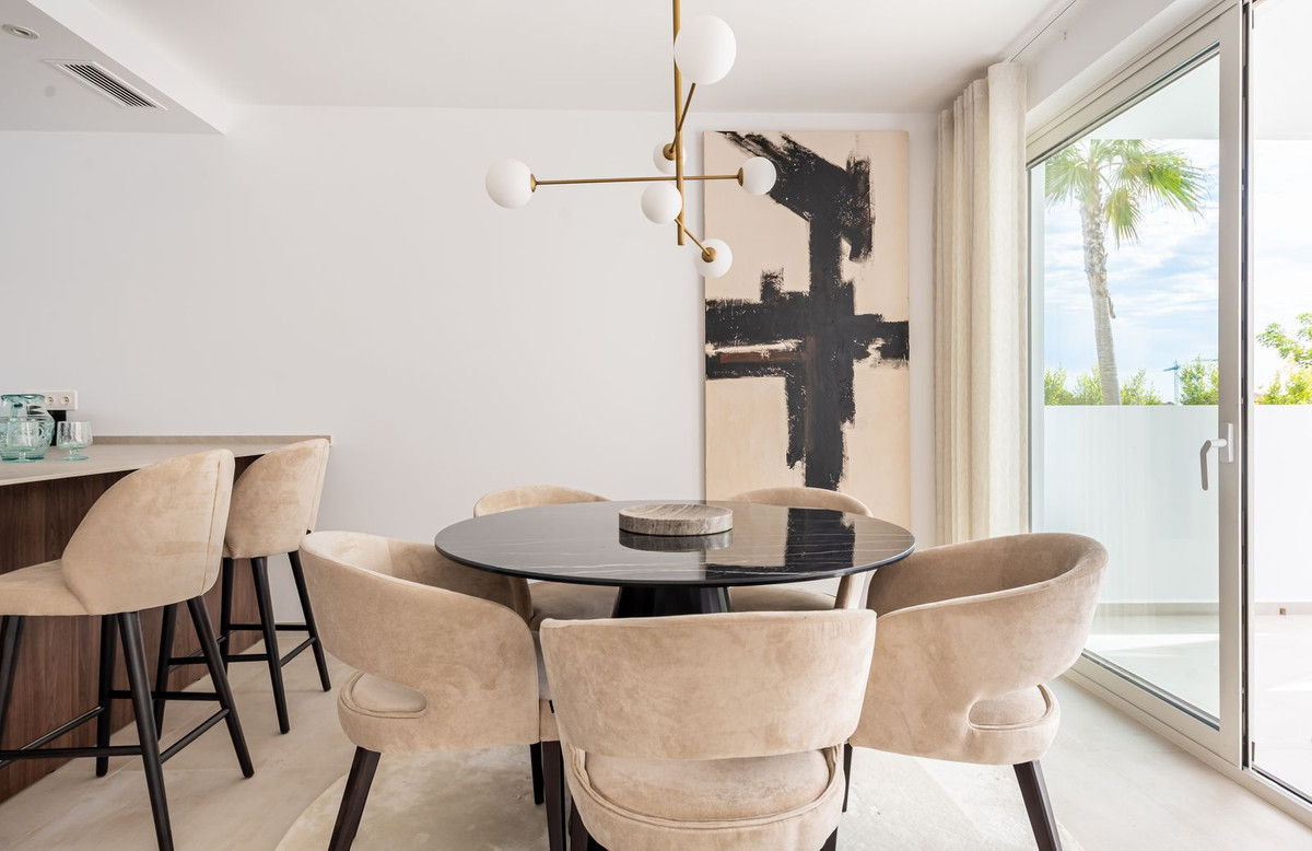 Op de begane grond is een ruime woonkamer die uitkomt op een groot terras, ideaal om te ontspannen of te feesten met familie en vrienden. De open moderne keuken, ook met toegang tot een ruim terras, is perfect om met het gezin te ontbijten of buiten te dineren.