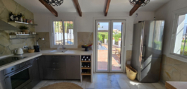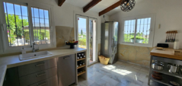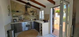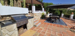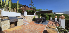 RECHTS VAN DE WOONKAMER IS EEN VOLLEDIG INGERICHTE KEUKEN MET CHROOM AFWERKING, GOED VERDEELD, ALLE APPARATEN ZIJN VAN GOEDE KWALITEIT. ER ZIJN OPENSLAANDE DEUREN VOOR GEMAKKELIJKE TOEGANG TOT NIET ÉÉN, MAAR 2 SPLIT-LEVEL TERRASSEN. GOED INGERICHT MET LIGSTOEL GAZEBO, HET LAGERE NIVEAU BESCHIKT OVER EEN 8 ZITS SCHADUWRIJKE EETTAFEL EN BBQ GEBIED, WEER MET DIE EEN PRACHTIG UITZICHT.
