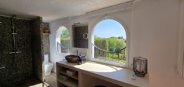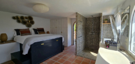 ALS JE HET HUIS NADERT, ZIE JE GEMAKKELIJK TE ONDERHOUDEN VOLGROEIDE TUINEN. OP HET EERSTE NIVEAU AAN DE LINKERKANT BEVINDT ZICH EEN ZELFSTANDIGE STUDIO MET EEN EIGEN TOEGANG. DE STUDIO IS LICHT DOOR DE 3 BOOGRAMEN EN HEEFT EEN WASTAFEL EN APARTE DOUCHE, EEN GROOT TWEEPERSOONSBED MET VEEL BERGRUIMTE. DE KAMER LEIDT NAAR EEN OPSLAGRUIMTE DIE KAN WORDEN OMGEZET IN EEN KEUKEN.