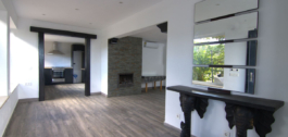 Gloednieuwe designkeuken. Lichte open woon/eetkamer.