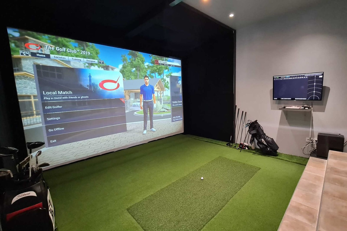 Buiten heeft de betegelde tuin een groot zwembad, pergola met buitenjacuzzi, barbecueplaats en berging. Er is ook een indrukwekkende speelkamer met een eigen bar, keuken en golfsimulator, perfect voor entertainment en sportevenementen.