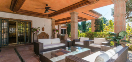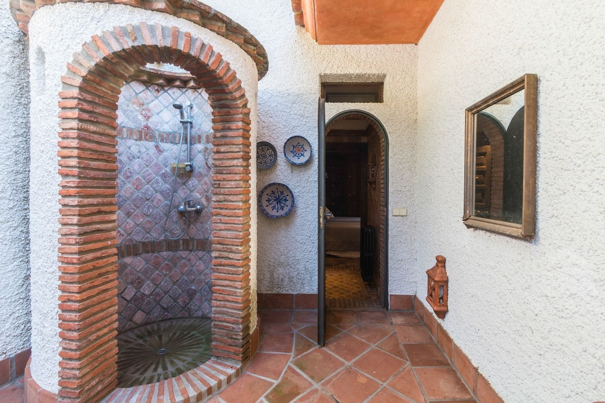 Deze villa in Andalusische stijl, ontworpen door een bekende Duitse architect in 2001, combineert naadloos traditionele charme met modern comfort. De villa ligt op slechts twee minuten lopen van het strand en heeft een prachtige tuin met fruitbomen en eeuwenoude olijfbomen. Het ruime terras, verdeeld in een barbecuegedeelte en een relaxzone, biedt de perfecte omgeving om buiten te genieten.