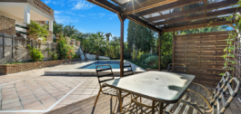 Fantastische kans; een villa met vier slaapkamers, op het zuidwesten gelegen in Elviria, dicht bij alle voorzieningen, op slechts tien minuten rijden van Marbella Stad, Puerto Banús en dicht bij het strand. De villa is verdeeld over twee verdiepingen en ligt op een perceel van 1324m2; met tuin, privé zwembad en BBQ ruimte. De entree heeft een open woon- en eetkamer met ingebouwde open haard en toegang tot het terras en de tuin, gastenslaapkamer, gastenbadkamer, volledig ingerichte keuken en kantoorruimte. Op de bovenverdieping is de master suite met toegang tot een groot terras met prachtig uitzicht op het zwembad en de bergen, twee gastenslaapkamers en een gastenbadkamer. Andere kenmerken zijn buitenparkeergelegenheid voor twee auto’s, inbouwkasten en een berging. Een woning met enorm potentieel om te renoveren.
