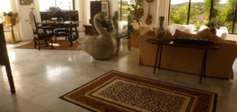 Deze landelijke villa gelegen op de nieuwe golden mile heeft een prachtig uitzicht op de zee, gelegen op een heuvel.