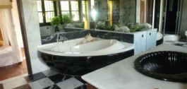 Het huis heeft zes slaapkamers en vier badkamers in het hoofd- en gastenverblijf.