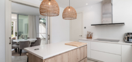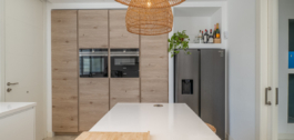 De keuken is uitgerust met hoogwaardig timmerwerk en apparatuur, waaronder een Amerikaanse koelkast met vriesvak, bordenwarmer en geavanceerde filterkranen voor warm en koud, stilstaand en bruisend water.