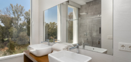 De begane grond heeft ook twee gastenslaapkamers met eigen badkamer en een gastentoilet. Er is een extra gastenslaapkamer met badkamer ensuite en daglicht op de benedenverdieping. Tot de voorzieningen behoren een fitnessruimte en spa, met sauna en gekoeld ijsbad, evenals een aparte wijnkelder. Er is een grote garage met ruimte voor minstens twee of drie auto’s. Het pand is op het zuiden georiënteerd en heeft hoge plafonds en veel natuurlijk licht in het hele huis, evenals een zeer goede mate van privacy. Bezichtigingen worden aanbevolen.