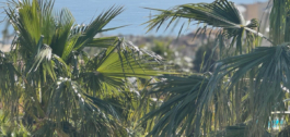 Aangelegde tuin met irrigatiesysteem, palmbomen, olijfboom, bloemen en struiken