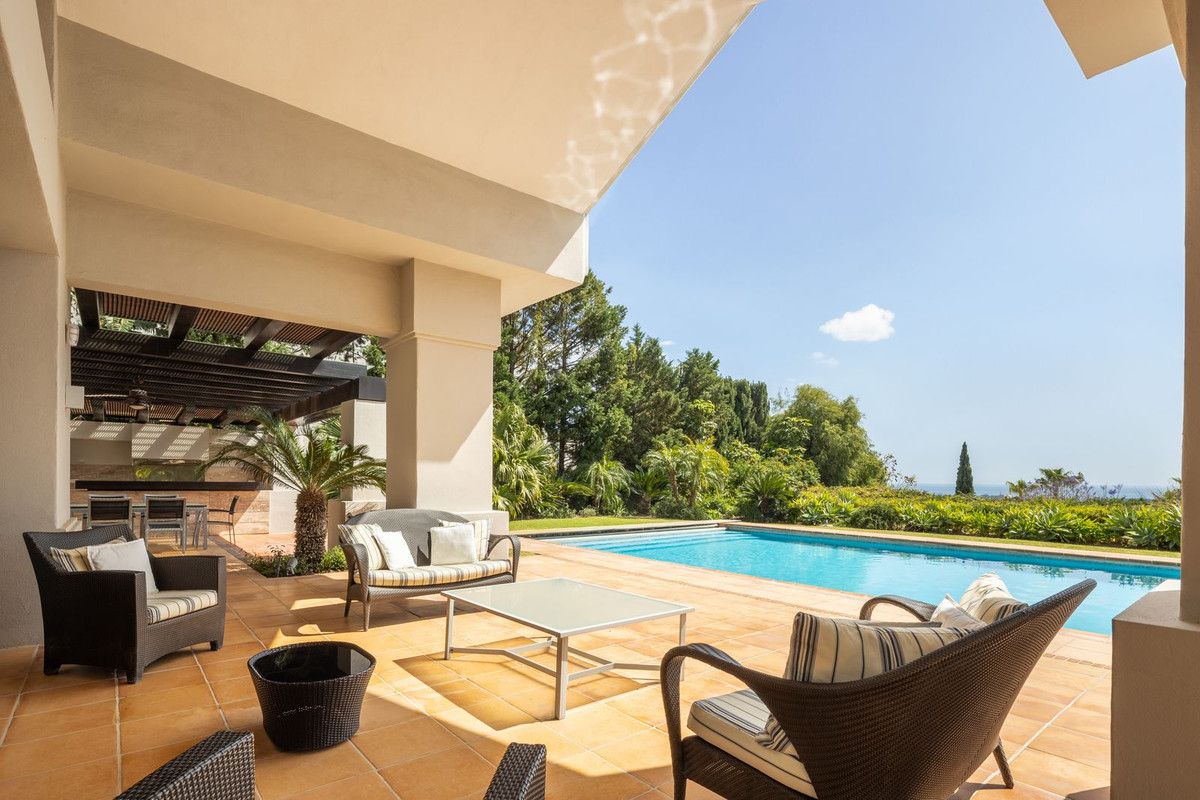Gelegen in een van de meest prestigieuze wijken van Los Flamingos, biedt deze prachtige villa op het zuiden een spectaculair panoramisch uitzicht op zee en ligt op slechts enkele minuten van alle voorzieningen, het strand en op slechts 10 minuten van Puerto Banús.