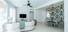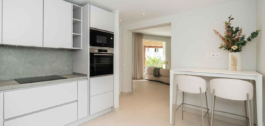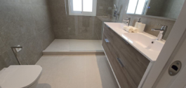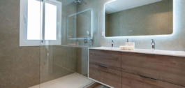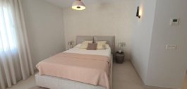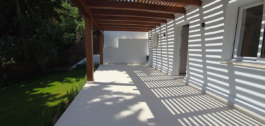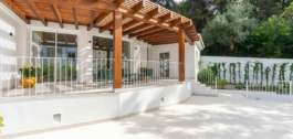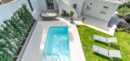Het is volledig gerenoveerd en smaakvol ingericht met kwaliteitsmeubilair (Roche Bobois). De woning is gelijkvloers en bestaat uit een hoofdvilla met 2 slaapkamers (1 master slaapkamer met toegang tot het terras, kleedkamer, en 1 complete badkamer en de tweede slaapkamer met badkamer en suite), woonkamer, open keuken, beide met directe toegang tot het zwembad en de tuin, 1 gastentoilet. In de tuin vinden we het zwembad en een bijgebouw dat gebruikt kan worden als studeerkamer, kantoor, atelier… met open keuken en badkamer met douche.