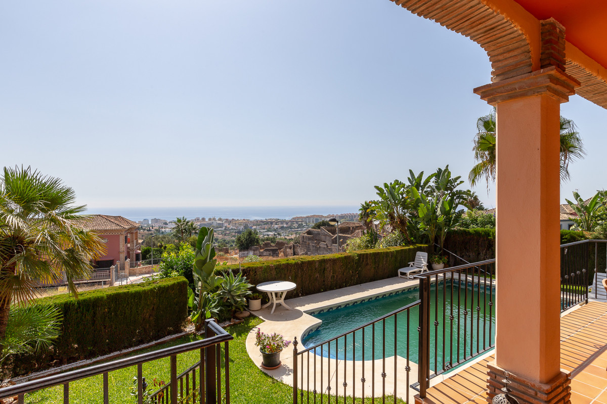 Grote, aantrekkelijke gezinswoning in zeer rustige omgeving vlakbij Marbella en naast een natuurpark. Prachtig open zuid en zuidwest uitzicht. Grote, volledig uitgeruste keuken met open haard en uitzicht op zee. Ruime woon/eetkamer uitkomend op terras en zwembad. Grote kelder.
