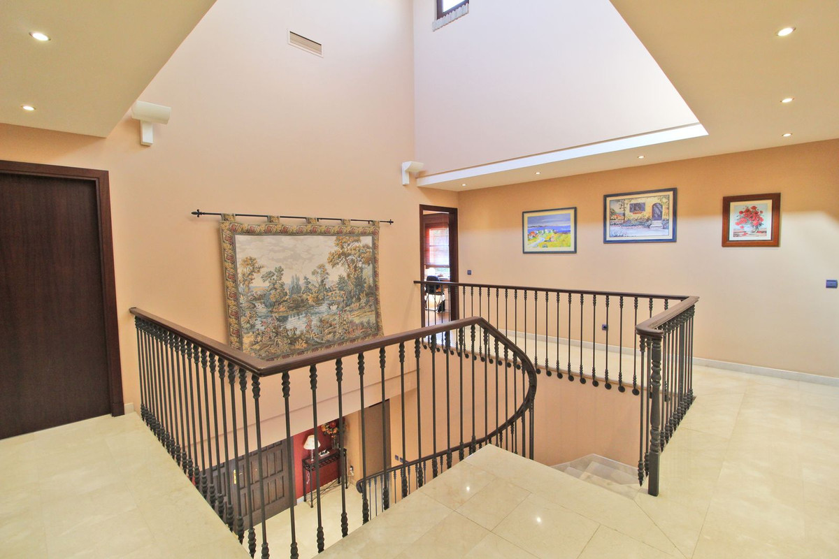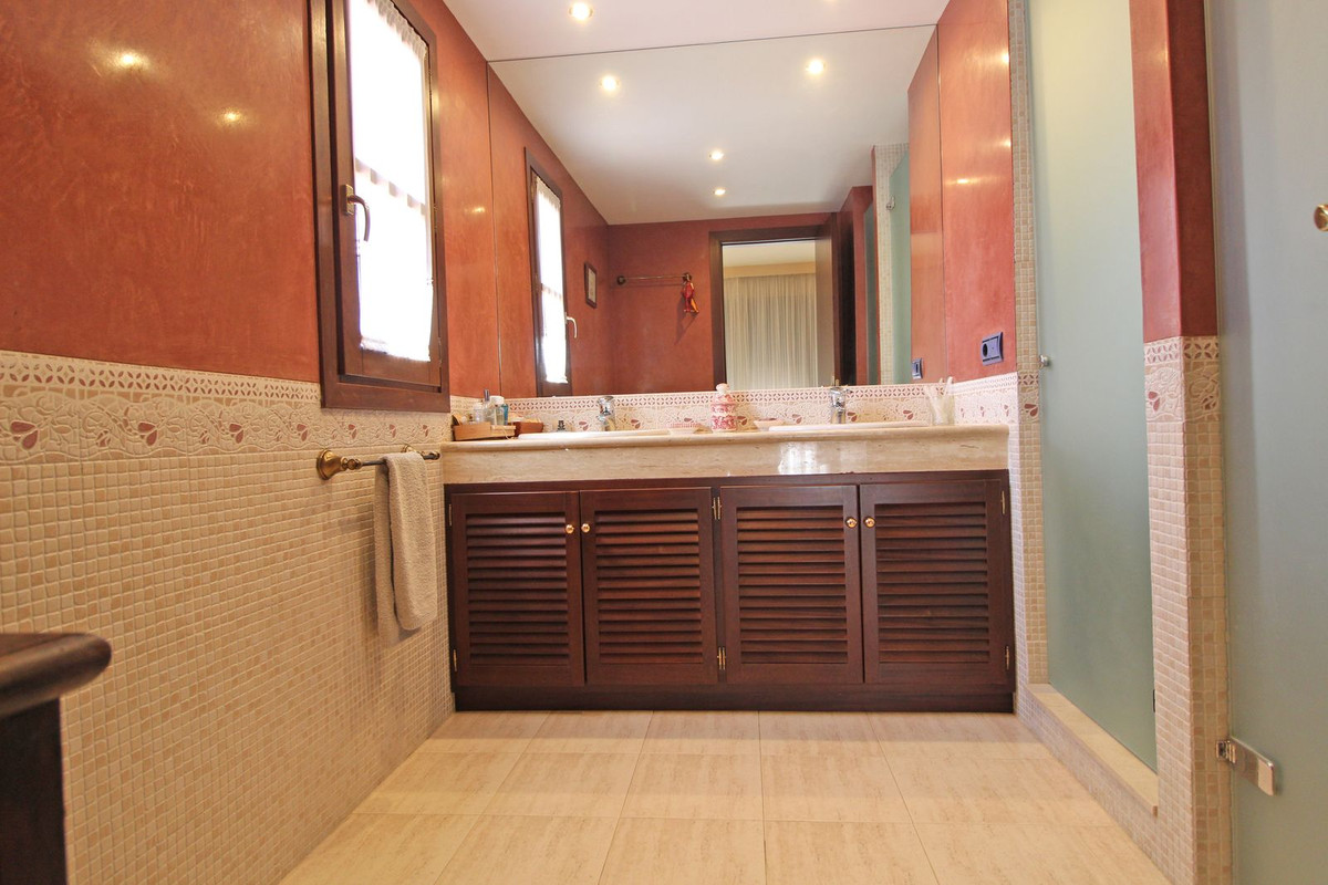 Prachtige villa gelegen in Xarblanca, Marbella, op een paar minuten rijden van alle voorzieningen, op loopafstand van de supermarkt. Het huis is gebouwd in 2000 en is in een onberispelijke staat. De woning heeft 5 slaapkamers, 1 van de slaapkamers is op de begane grond en 4 slaapkamers op de bovenverdieping. Vanaf het terras op de begane grond heb je een spectaculair uitzicht op zee. De woonkamer is ruim met toegang tot het terras, aparte keuken van waaruit je toegang hebt tot de kelder. In de kelder is er een garage voor 2 auto’s en meer ruimte voor een speelkamer, extra slaapkamer, bioscoop of het gebruik dat de toekomstige eigenaar eraan wil geven.