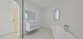 Op de eerste verdieping zijn er nog eens DRIE slaapkamers met 2 en-suite badkamers en inbouwkasten, en twee hebben toegang tot een zeer ruim, privé en zonnig terras met uitzicht op zee.