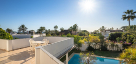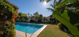 Deze charmante en lichte villa in Andalusische stijl ligt in het centrum van de populaire urbanisatie Marbesa.