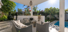 De woon- en eetkamer hebben directe toegang tot het overdekte terras met uitzicht op de tuin en het zwembad. Op de begane grond zijn TWEE slaapkamers met en-suite badkamers.