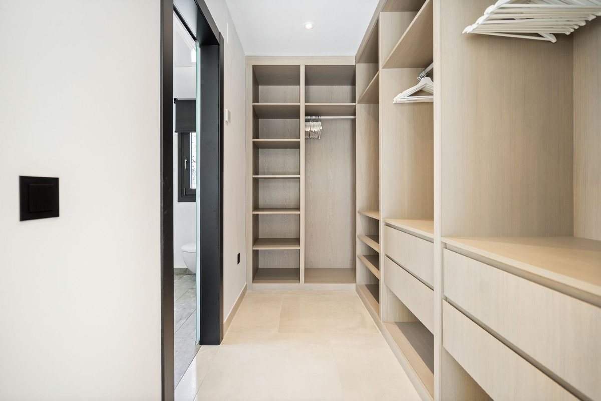 De bovenverdieping beschikt over een chill-out lounge met sofa en tv, twee grote en luxe en-suite slaapkamers, een met een inloopkast en de andere met inbouwkasten. Beide slaapkamers en de chill-out ruimte hebben toegang tot een royaal zonovergoten terras met uitzicht op de tuin.
