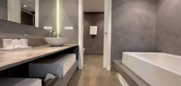 4 tweepersoonsslaapkamers, 3 badkamers. 5 terrassen waaronder een panoramisch dakterras met douche en ligbedden.
