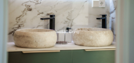 Binnen is het ontwerp eigentijds en modern, wat de recente renovatie weerspiegelt. Een moderne boho-chique esthetiek bepaalt het interieur, met lichte tinten en natuurlijke texturen die een open, luchtige sfeer creëren.