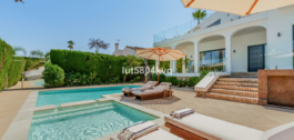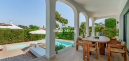 Deze mooie, onlangs gerenoveerde villa met vier slaapkamers ligt in de woonwijk Nueva Andalucía, binnen de veilige, omheinde gemeenschap van Marbella Country Club.