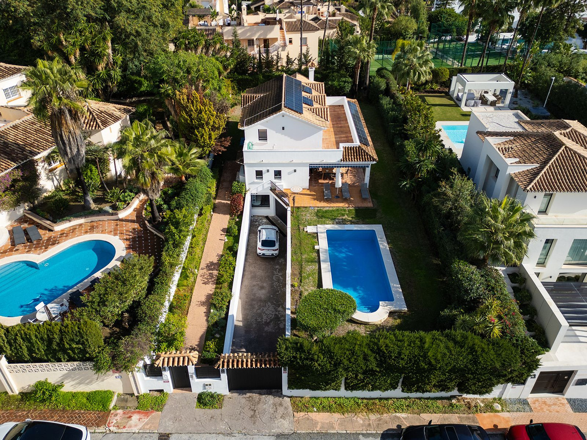 Deze fantastische villa ligt midden in de Golf Valley in Nueva Andalucia, een rustig en zeer aantrekkelijk gebied met de nabijheid van golfbanen zoals Las Brisas, Los Naranjos en Aloha Golf.