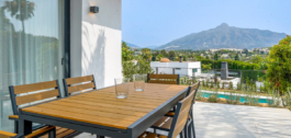 Deze absoluut prachtige villa is onlangs volledig gerenoveerd in een moderne eigentijdse stijl en ligt in Nueva Andalucia, op slechts een klein eindje lopen van voorzieningen en restaurants, waaronder een supermarkt. Het grote commerciële centrum van Central Plazas ligt op slechts 10 minuten lopen. De villa ligt aan een doodlopende weg, waardoor je verzekerd bent van een rustige en privé locatie, vrij van verkeer. De villa zelf is zeer indrukwekkend en de materialen die gebruikt zijn bij de renovatie zijn van topkwaliteit. Bij binnenkomst vinden we een ruime open indeling, met grote ramen die veel natuurlijk licht binnenlaten. Dit gebied omvat de keuken, met eiland en volledig uitgerust met hoogwaardige apparatuur, waaronder een wijnkoelkast, de eethoek en de woonkamer met open haard. Er is ook een ontbijthoek en verschillende terrassen om te genieten van het omgevingsklimaat. De wasruimte en opslagruimte bevinden zich in een aparte ruimte. Op de bovenverdieping vinden we drie slaapkamers, allemaal met een moderne badkamer ensuite en twee van de slaapkamers hebben een mooi terras. Op de benedenverdieping van het pand vinden we nog twee slaapkamers, twee badkamers, een tv/cinemakamer en een speelkamer met pooltafel/tafeltennistafel. Er is ook een kantoor op dit niveau. Er zijn verschillende functies opgenomen in het ontwerp, zoals een Demotic-systeem dat de verlichting, verwarming, koeling, elektrische rolluiken en de beveiliging regelt. Alles kan worden bediend via een mobiele smartphone. De villa is goed beveiligd met CCTV-camera’s zowel binnen als buiten de villa en deze camera’s zijn ook toegankelijk via een smartphone. De aangelegde tuinen bieden een prachtig en open uitzicht op de berg La Concha en de villa biedt ook volledige privacy. Alles wordt geleverd met een jaar garantie, waardoor de nieuwe eigenaar absoluut vertrouwen heeft in dit prachtige nieuwe huis.