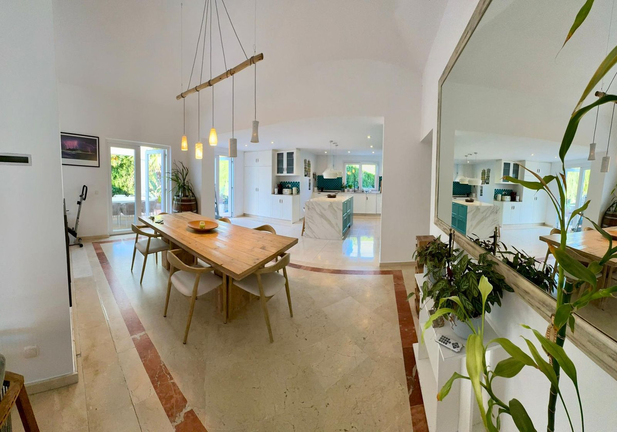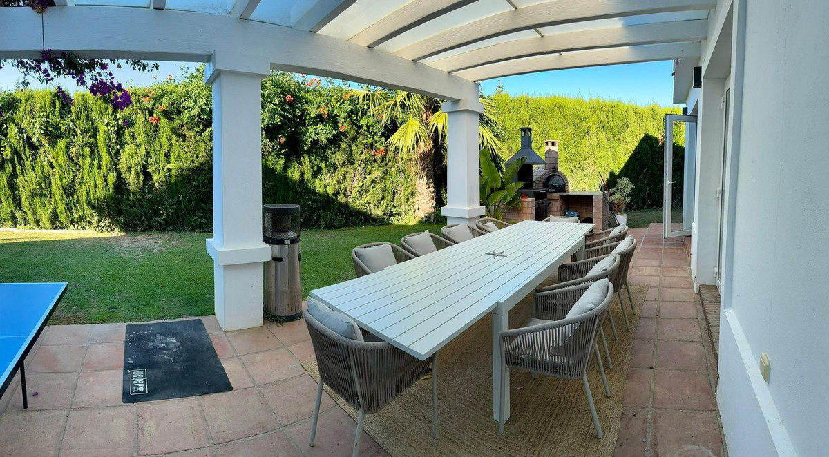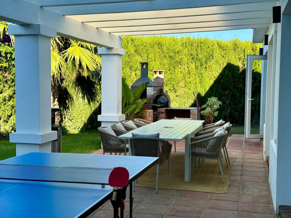 Prachtige gezinswoning in de exclusieve wijk Sotogrande. Deze villa met 5 slaapkamers ligt aan het strand van de hoofdweg A7 en dicht bij een aantal winkels en voorzieningen, evenals het strand en de jachthaven van Sotogrande. Het huis heeft een mooie entree en oprit, die leidt naar een privégarage en naar de voorkant van het huis, die uitkijkt op het goed onderhouden zwembad en de tuin. Er zijn verschillende leefruimtes buiten, waar je de hele dag van de zon kunt genieten of de broodnodige schaduw kunt opzoeken in de hete zomermaanden. Er zijn chill out-ruimtes, eethoeken en een prachtige plek voor de BBQ en een pizza-oven in de buitenlucht. De villa is uitzonderlijk goed geprijsd en is perfect als vakantiehuis of als permanent familieverblijf.