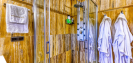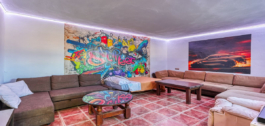 Op het zwembadniveau biedt een apart woongedeelte een privéoase met een eigen comfortabele woonkamer, een overdekte veranda met een handig toilet, een volledig uitgeruste keuken, een extra badkamer en drie slaapkamers. Deze verdieping beschikt ook over ruime opslagruimte met een speciale koelruimte, een stookruimte en extra bergruimte, ideaal voor naadloos wonen.