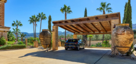 De buitenruimtes van het pand omvatten een ruime buitenkeuken, perfect om buiten te eten, en een verscheidenheid aan bijgebouwen die zijn ontworpen om zowel de levensstijl als de functionaliteit te verbeteren. Deze omvatten twee onafhankelijke garages, een studio met keuken en badkamer, extra opslagruimten en een stal. Een carport biedt nog meer overdekte parkeergelegenheid voor twee auto’s.