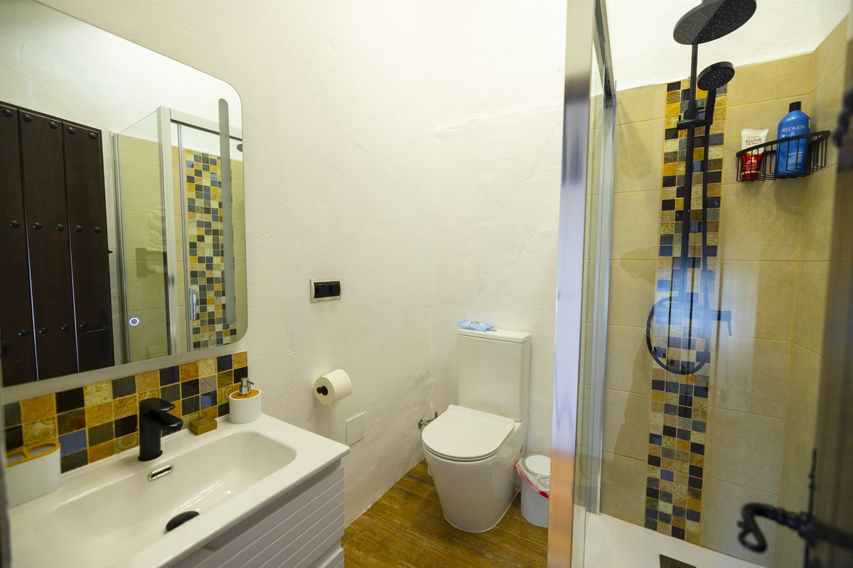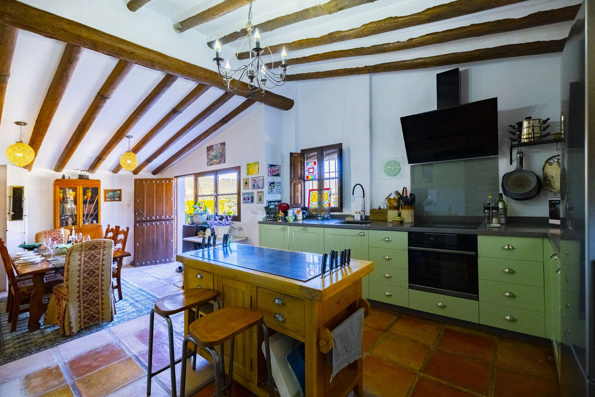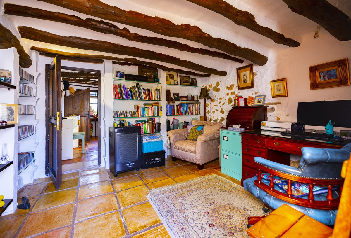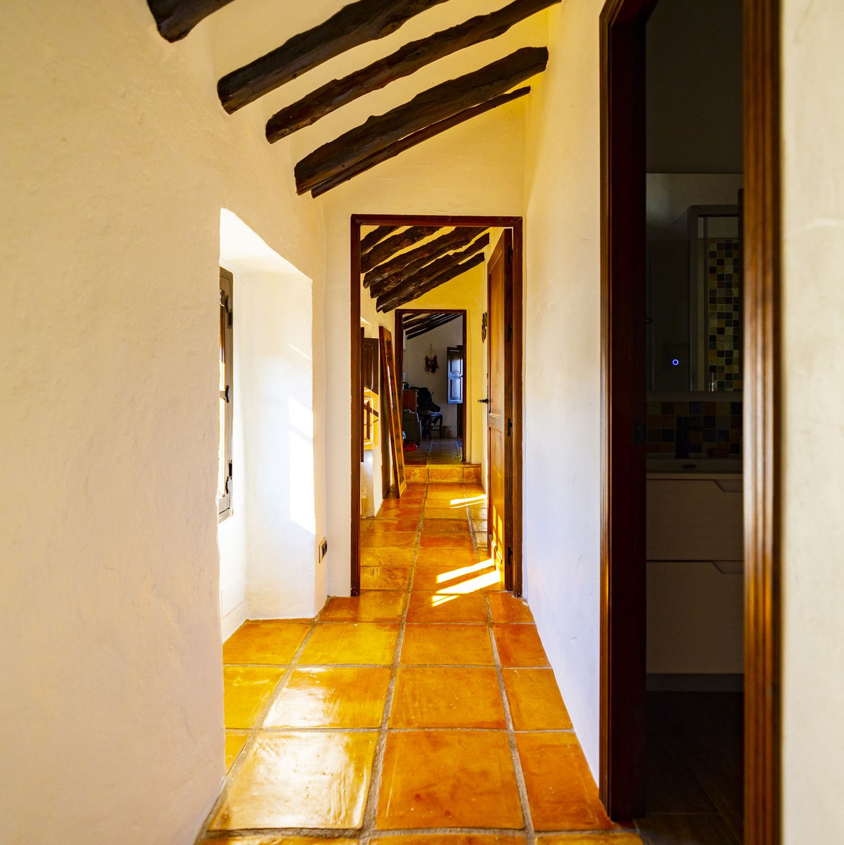 Het gastenverblijf staat als een verborgen juweeltje. Open en gastvrij, dit deel van de Cortijo heeft een hal, een grote gloednieuwe goed uitgeruste keuken, een eethoek en een gezellige zitkamer. De hoofdslaapkamer met en-suite badkamer met douche en kleedkamer ligt beneden. Je kunt ook genieten van de 2 extra charmante zitkamers, waarvan er een wordt gebruikt als kantoor. De 2 extra grote tweepersoonsslaapkamers en een doucheruimte bevinden zich boven.