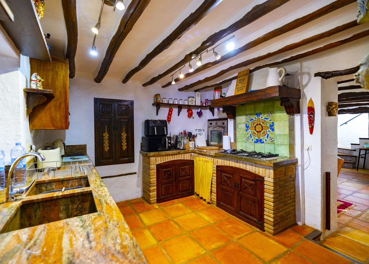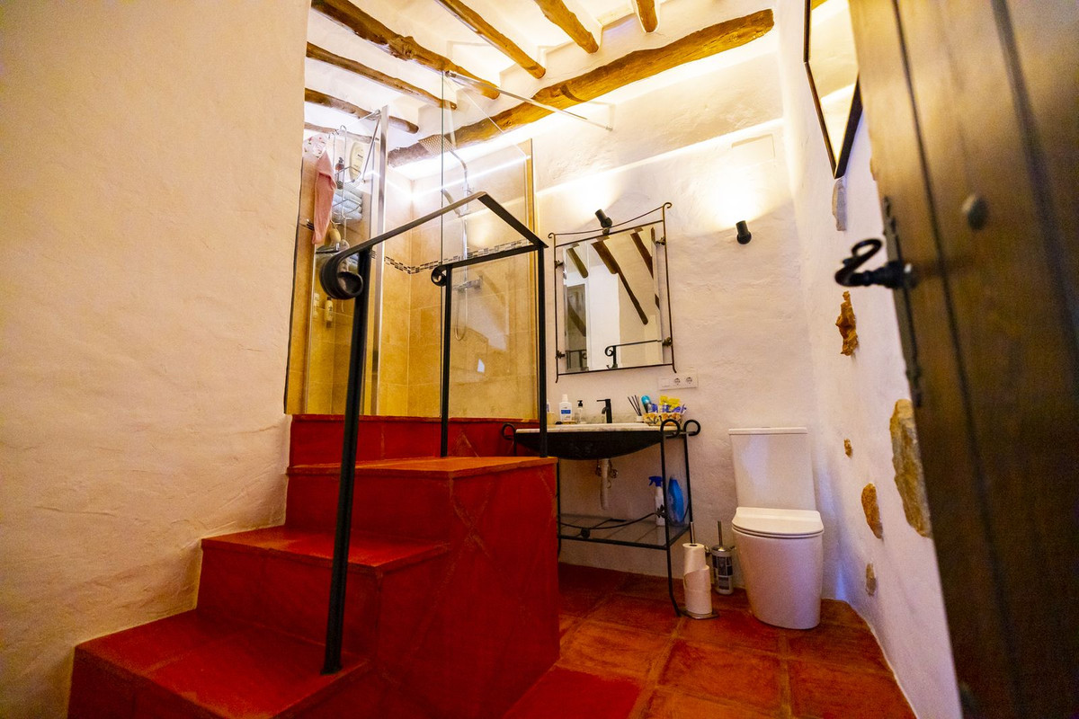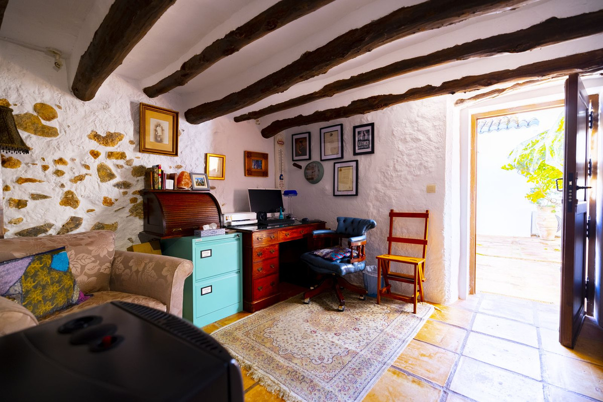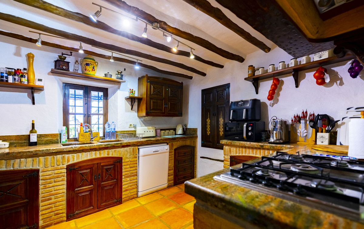 Het gastenverblijf staat als een verborgen juweeltje. Open en gastvrij, dit deel van de Cortijo heeft een hal, een grote gloednieuwe goed uitgeruste keuken, een eethoek en een gezellige zitkamer. De hoofdslaapkamer met en-suite badkamer met douche en kleedkamer ligt beneden. Je kunt ook genieten van de 2 extra charmante zitkamers, waarvan er een wordt gebruikt als kantoor. De 2 extra grote tweepersoonsslaapkamers en een doucheruimte bevinden zich boven.