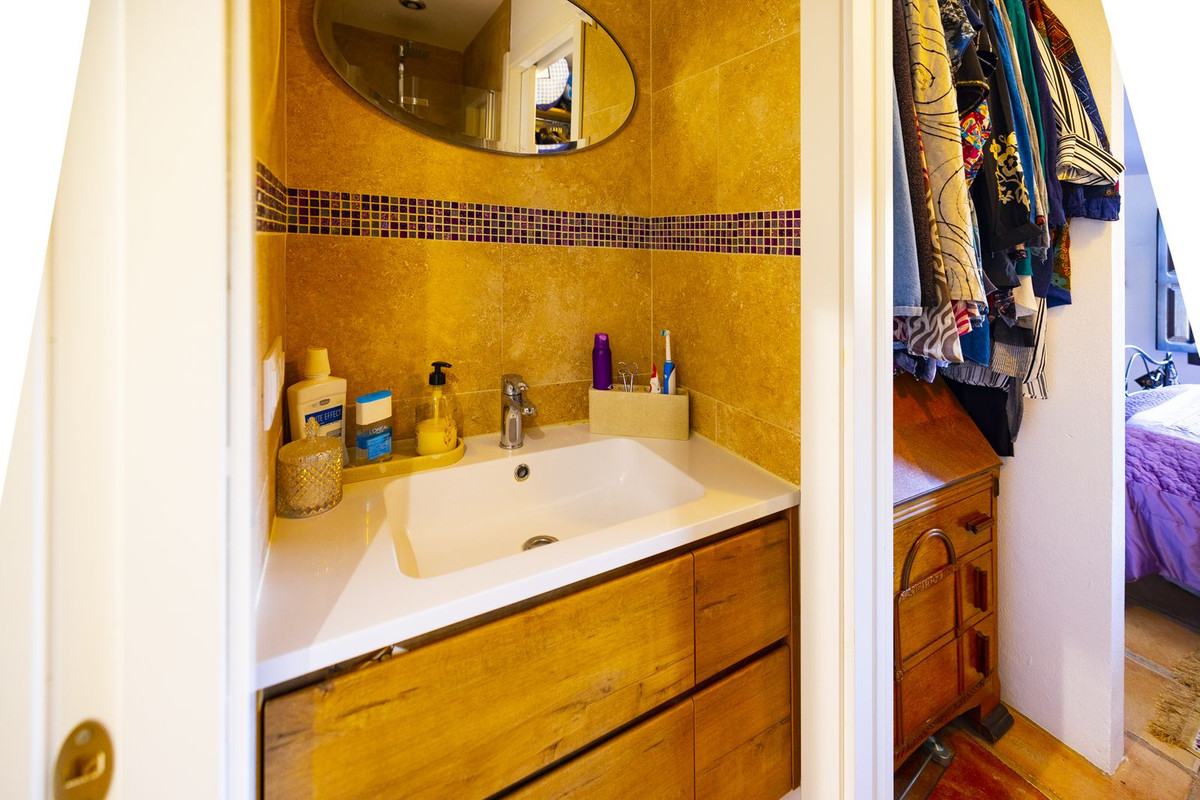 Bij binnenkomst in de uitnodigende hal, versierd met mozaïekvloeren en fascinerende details, word je meteen begroet door een sfeer die fluistert van de authentieke charme van het huis.
