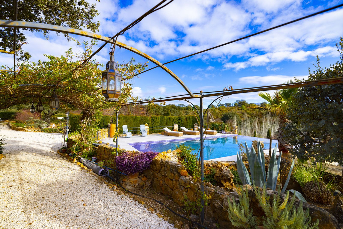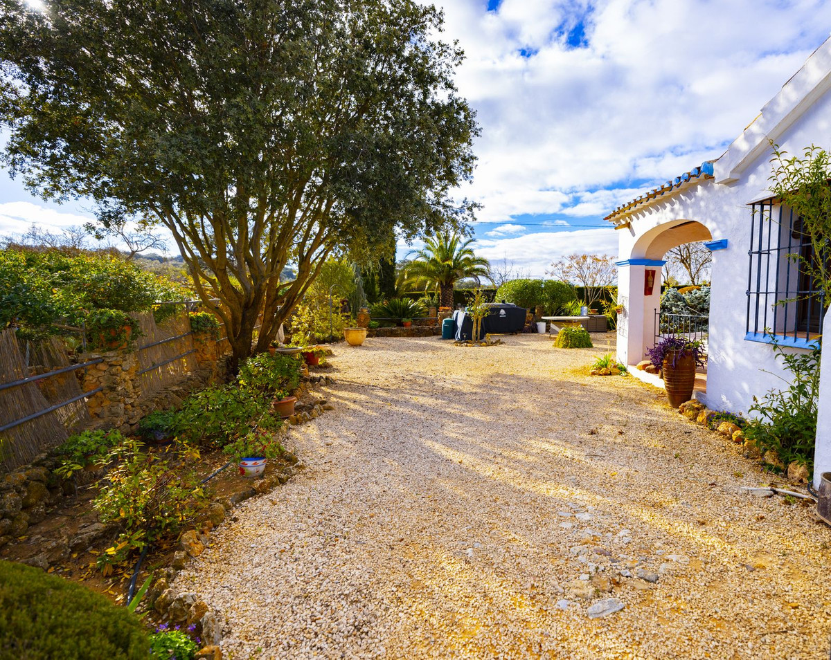 Als je de Cortijo nadert, gaat er een elektrisch bediende privépoort open die een oprijlaan onthult die naar het huis leidt. Je eerste blik op het huis weerspiegelt de zorgvuldige aandacht voor detail die deze prachtige leefruimte kenmerkt.