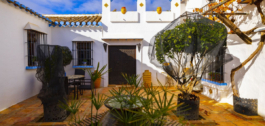 Als je binnenkomt door de indrukwekkende Andalusische dubbele deuren, word je verwelkomd door een betoverende Andalusische binnenplaats, vol rustieke charme en een prachtige fontein, typisch voor de Moorse stijl.