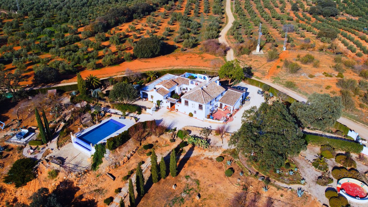 Het indrukwekkende landgoed van ongeveer 300m2 op ongeveer 40.000m2 grond ligt aan de rand van Villanueva del Rosario, een witgekalkt dorp in de provincie Malaga, Andalusië, Zuid-Spanje. Dit mooie dorp ligt aan de voet van de Cerro de la Cruz, met glooiend platteland aan de andere drie zijden. De regio staat bekend om de kwaliteit van zijn olijfolie en is van nature bevolkt met olijfgaarden met tarwevelden ertussen. Het gebied werd oorspronkelijk bewoond door de Romeinen, die werden gevolgd door Arabische en Visigotische nederzettingen langs de rivieroever.