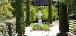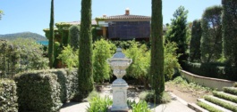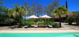 Een overdekt terras van 100 m² leidt naar een afgelegen zwembad en prachtig aangelegde formele tuinen met rozen, bougainvillaea, agapanthus en meer