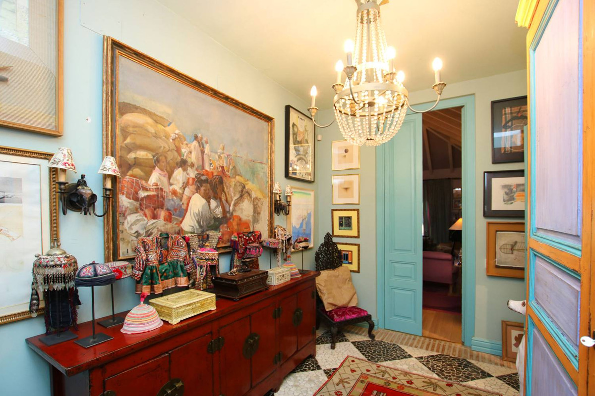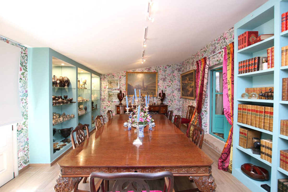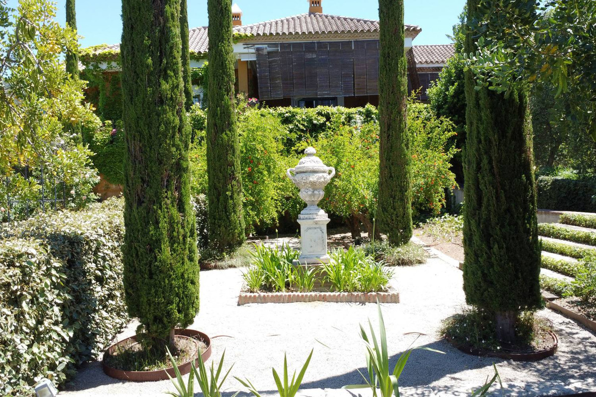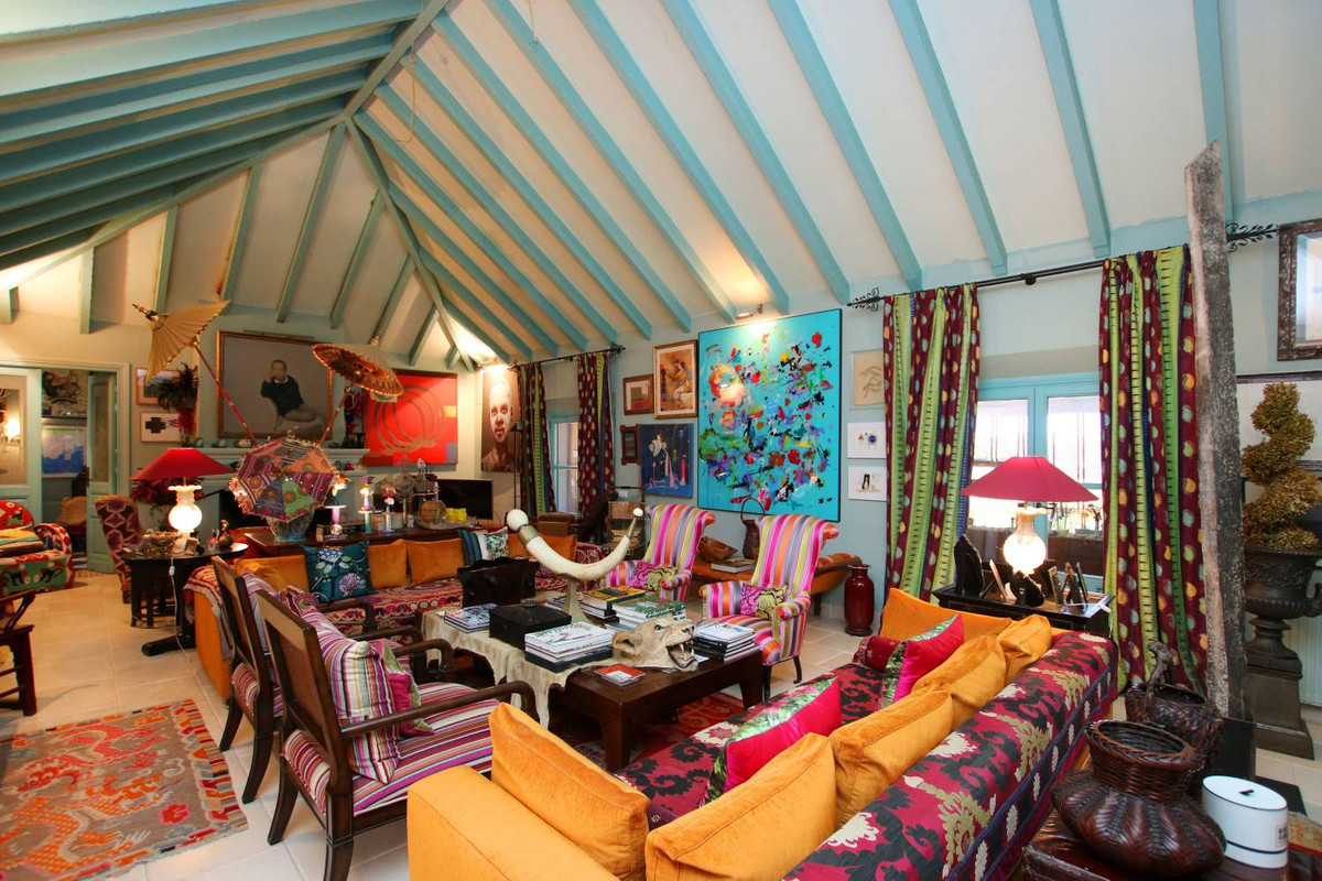 Een meesterwerk van traditionele Andalusische architectuur, met origineel behang van de bekende Franse ontwerper Christian Lacroix, met bijpassende stoffen die een levendig, kleurrijk interieur creëren dat de tropische bloemen en citrusbomen weerspiegelt die het landgoed omringen.