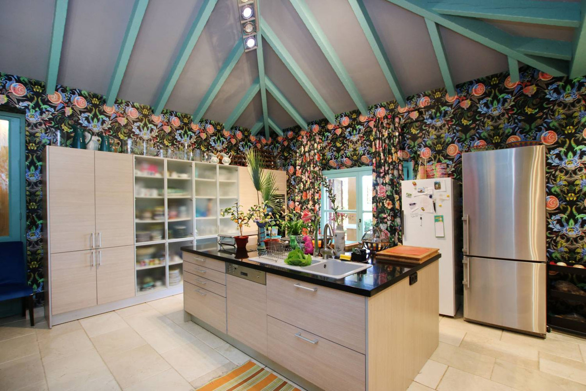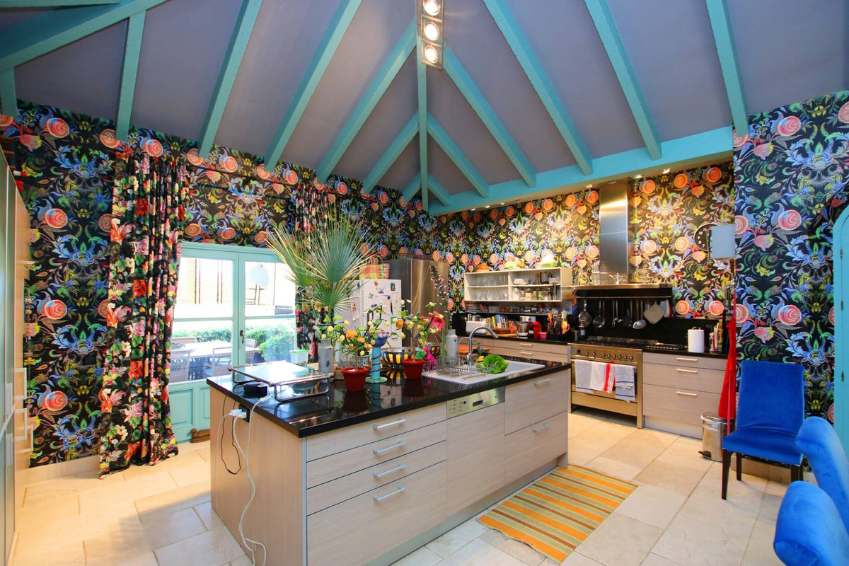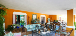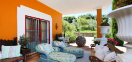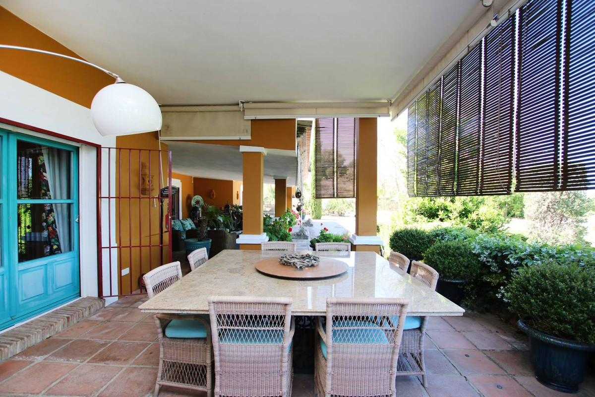 Een meesterwerk van traditionele Andalusische architectuur, met origineel behang van de bekende Franse ontwerper Christian Lacroix, met bijpassende stoffen die een levendig, kleurrijk interieur creëren dat de tropische bloemen en citrusbomen weerspiegelt die het landgoed omringen.