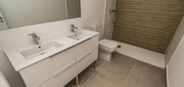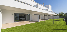 Appartement op de begane grond met twee slaapkamers, twee badkamers met vloerverwarming, een woonkamer met open keuken en een fantastisch terras met privétuin.