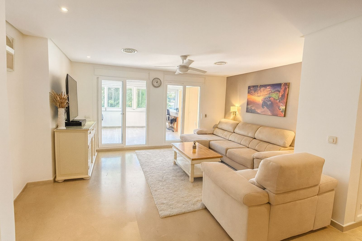 Dit ruime begane grond appartement is gelegen in het lommerrijke Torrequebrada Golf Resort. Het appartement bestaat uit 148 m² woonruimte met een gedeeltelijk overdekt terras van ongeveer 46 m². Schuifdeuren van vloer tot plafond verbinden naadloos de woonkamer en de buitenruimte.